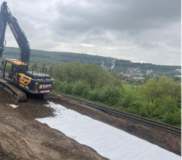 As part of the Peels Pit Haul Road project for the Transpennine Route Upgrade, a haul road was required for the movement of materials along the length of the track works. Contractor BAM achieved a 46% reduction in the volume of imported fill by incorporating Tensar InterAx geogrid to stabilise the construction platform. This not only delivered significant cost and material savings, but also reduced the number of haulage movements on site. This improved the overall safety on the site by lowering the risk of vehicle interactions in areas where multiple machines operate nearby.