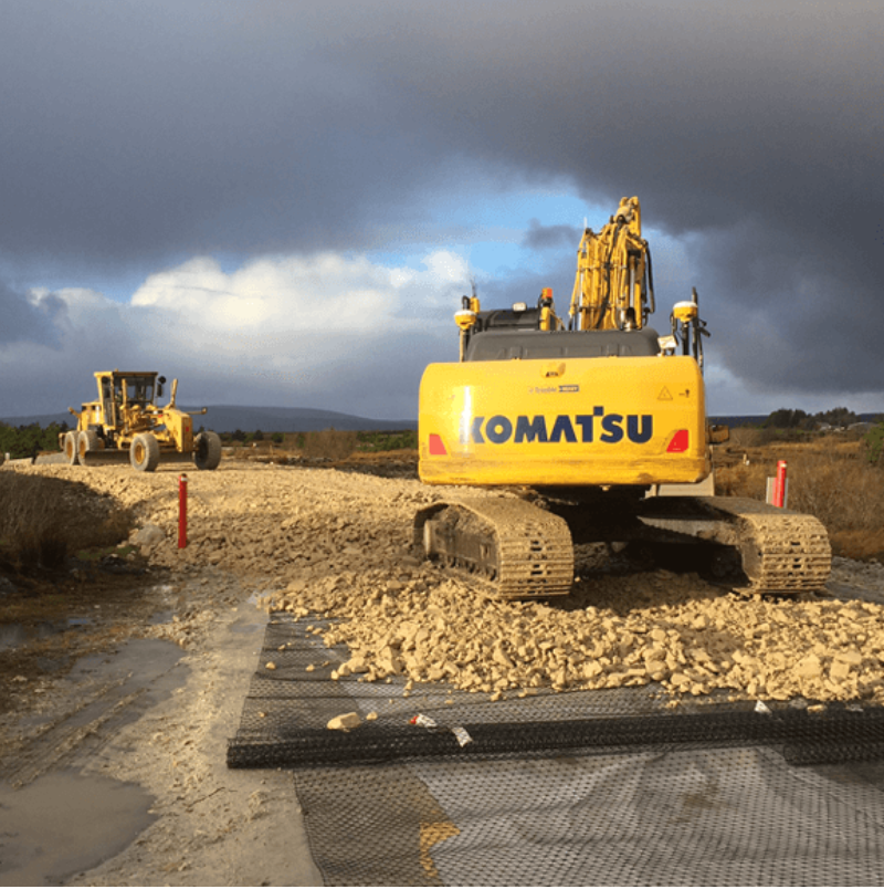 Two of the most important types of enabling works are temporary access roads and working platforms – creating a safe working environment for all construction vehicles and equipment. Without using temporary unpaved roads, it could lead to issues such as soil compaction and rutting of the subgrade. Access roads and platforms protect the underlying soils while ensuring they can support the load-bearing capacity of the site traffic.