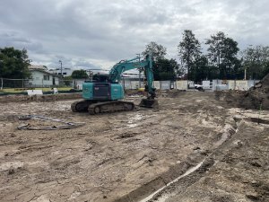 The contractor faced major groundwater issues in a very weak clay subgrade, at depths of over 1.5m. Subgrade CBRs were as low as 1.5%. They needed to stabilise this subgrade quickly to continue construction and minimise costs and delays. The removal of redundant underground fuel tanks posed further complications during construction.